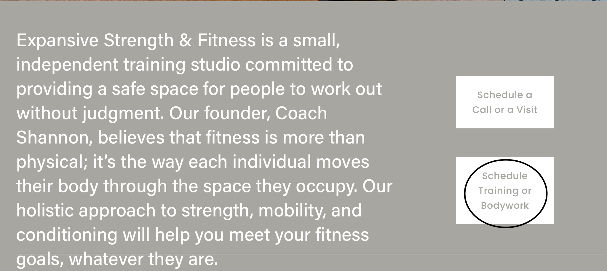 Step 1: Go to the homepage and click the button that reads “Schedule Training or Bodywork.”