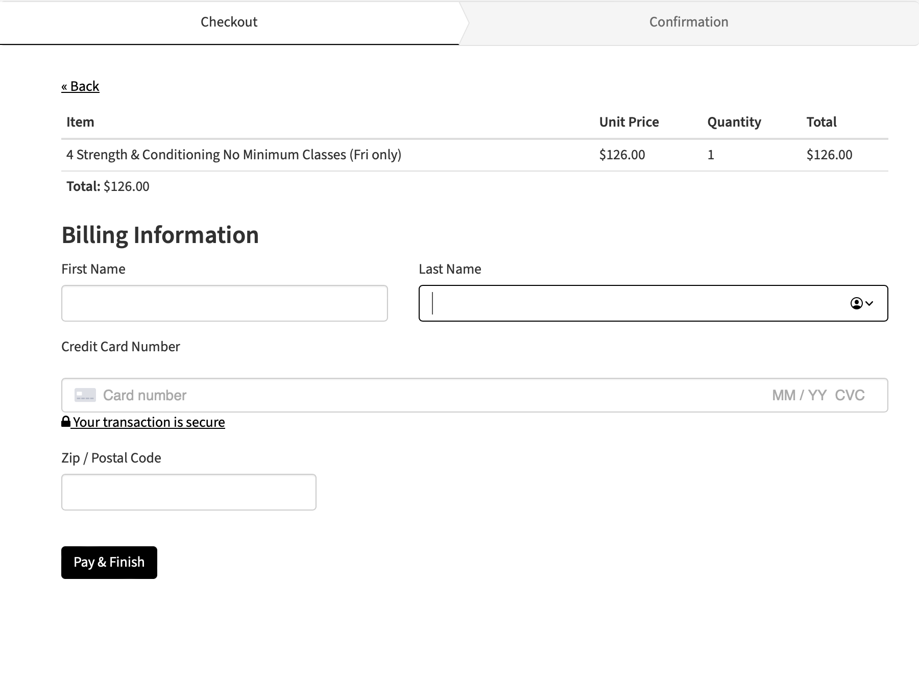 Step 5: Fill in the billing information. When you are ready, select “Pay & Finish.”